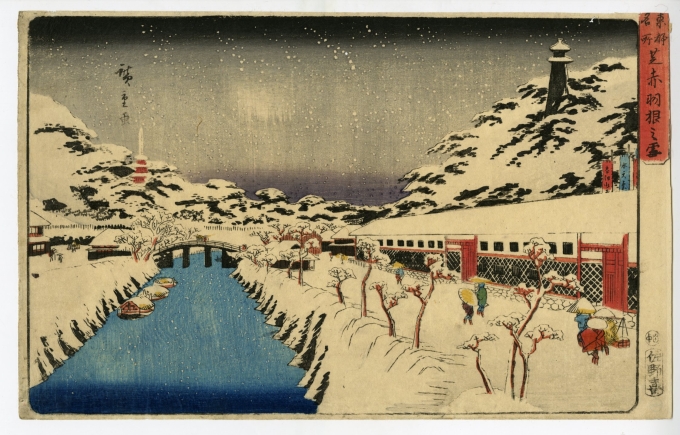 Hiroshige Famous Views of the Eastern Capital, Snow at Akabane Bridge in Shiba