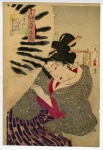 Ukiyoe painter. Also referred to as Gyokuro, Kaisai, Oso, and others as Betsugo. A pupil of Kuniyoshi , a fellow of Kawanabe Kyosai under the master in common. In the end of Bakufu, he attempted to get out of the Kuniyoshi ’s style in the warrior painting, actor painting, and beauty, instead produced many atrocity prints with cruel depictions reflecting the times’ trend, which brought him a nickname “Bloddy Yoshitoshi ”. In around 1878, he was largely affected by Kikuchi Yosai’s painting style, to which he added a western style in order to create his own, with which he produced many pieces taking the subject from historical incidents. In the following year, he began to produce the multi-color print newspaper, his creativity never dried out. He made a greatest success among the Ukiyoe painters of the times most of whom were fading away. He also instructed Toshikata as his mentor. His painting style has been handed down until today through Kaburaki Kiyokata and Ito Shinsui .