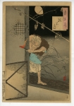 Ukiyoe painter. Also referred to as Gyokuro, Kaisai, Oso, and others as Betsugo. A pupil of Kuniyoshi , a fellow of Kawanabe Kyosai under the master in common. In the end of Bakufu, he attempted to get out of the Kuniyoshi fs style in the warrior painting, actor painting, and beauty, instead produced many atrocity prints with cruel depictions reflecting the timesf trend, which brought him a nickname gBloddy Yoshitoshi h. In around 1878, he was largely affected by Kikuchi Yosaifs painting style, to which he added a western style in order to create his own, with which he produced many pieces taking the subject from historical incidents. In the following year, he began to produce the multi-color print newspaper, his creativity never dried out. He made a greatest success among the Ukiyoe painters of the times most of whom were fading away. He also instructed Toshikata as his mentor. His painting style has been handed down until today through Kaburaki Kiyokata and Ito Shinsui .