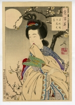 The artwork shown is one of Tsukihyakushi (=One Hundred Aspects of the Moon), a serial artwork of Tsukioka Yoshitoshi who was called the last ukiyo-e painter after the end of Bakufu. He took seven years to complete this great artwork consisted of 100 pieces."
