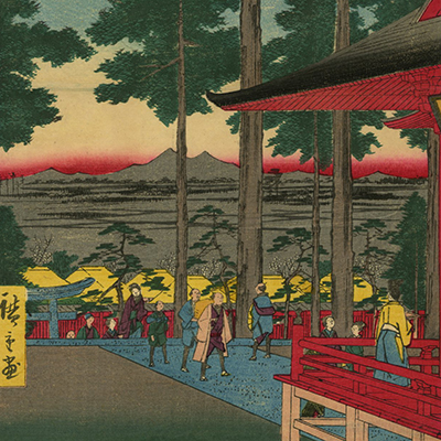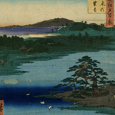 One Hundred Famous Views of Edo, Robe-Hanging Pine, Senzoku Pond