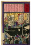 Ukiyoe painter. Also referred to as Gyokuro, Kaisai, Oso, and others as Betsugo. A pupil of Kuniyoshi , a fellow of Kawanabe Kyosai under the master in common. In the end of Bakufu, he attempted to get out of the Kuniyoshi fs style in the warrior painting, actor painting, and beauty, instead produced many atrocity prints with cruel depictions reflecting the timesf trend, which brought him a nickname gBloddy Yoshitoshi h. In around 1878, he was largely affected by Kikuchi Yosaifs painting style, to which he added a western style in order to create his own, with which he produced many pieces taking the subject from historical incidents. In the following year, he began to produce the multi-color print newspaper, his creativity never dried out. He made a greatest success among the Ukiyoe painters of the times most of whom were fading away. He also instructed Toshikata as his mentor. His painting style has been handed down until today through Kaburaki Kiyokata and Ito Shinsui .
